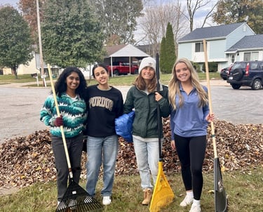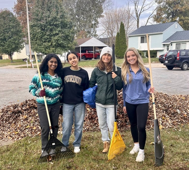 Every year, Purdue students volunteer to help local households prepare their homes for winter. HHSSC was able to rake leaves, chop wood, clean gutters, and help three local families. We had a great time working together to help our neighbors!