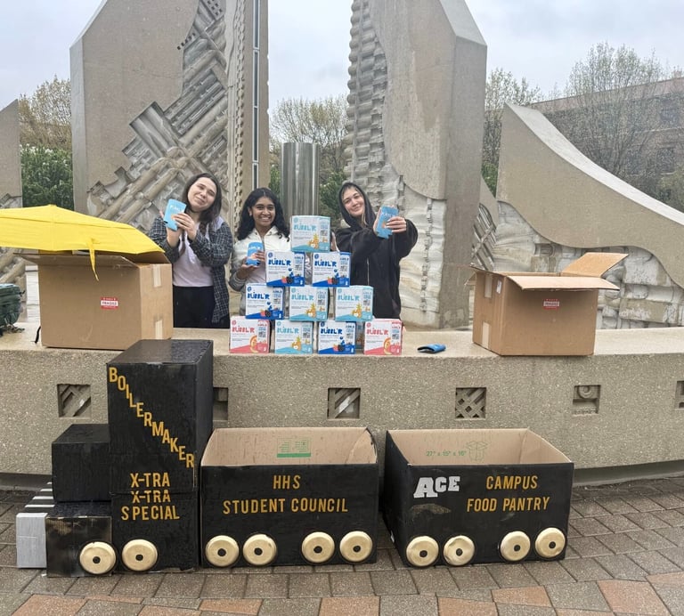 The Ace Food Pantry supports the Purdue community through its mission of providing food and resources free of charge. This drive helped to bring in food & sanitary items to support Ace in their mission. Anyone with a PUID can contact Ace to set up an appointment to either volunteer or come in to collect items!