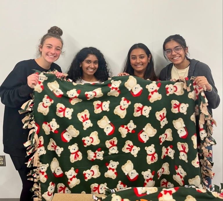 To celebrate our last meeting of the Fall 2024 semester, we took a break from event planning and worked together to make blankets for hospitalized children. We had a great time bonding with each other while giving back to the community!