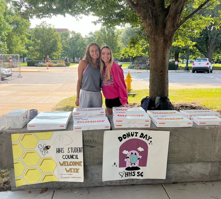 We welcomed students back to campus by hosting 3 days of events throughout the first week of classes. These events included free donuts, a motivation station, and HHS trivia!